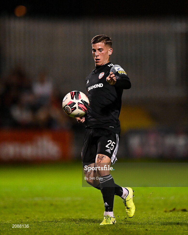 20 September 2021; Evan McLaughlin of Derry City during the SSE Airtricity League Premier Division match between Bohemians and Derry City at Dalymount Park in Dublin. Photo by Seb Daly/Sportsfile