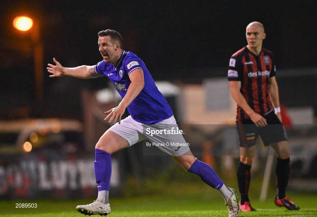 24 September 2021; Shane McEleney of Finn Harps runs to appeal to referee Ray Matthews, not pictured, during the SSE Airtricity League Premier Division match between Bohemians and Finn Harps at Dalymount Park in Dublin. Photo by Piaras Ó Mídheach/Sportsfile