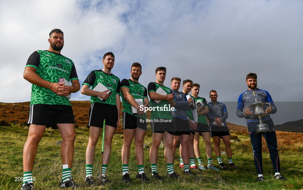 25 September 2021; All participants with winner Colin Ryan of Limerick and the Corn Setanta trophy after the M. Donnelly GAA All-Ireland Poc Fada finals at Annaverna Mountain in the Cooley Peninsula, Ravensdale, Louth. Photo by Ben McShane/Sportsfile