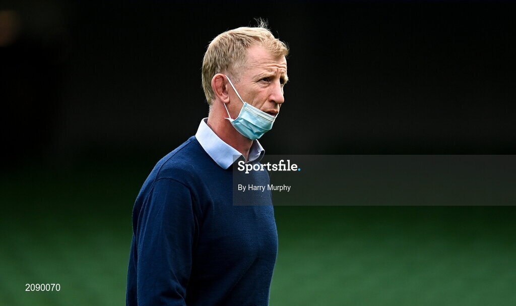 25 September 2021; Leinster head coach Leo Cullen before the United Rugby Championship match between Leinster and Vodacom Bulls at the Aviva Stadium in Dublin. Photo by Harry Murphy/Sportsfile