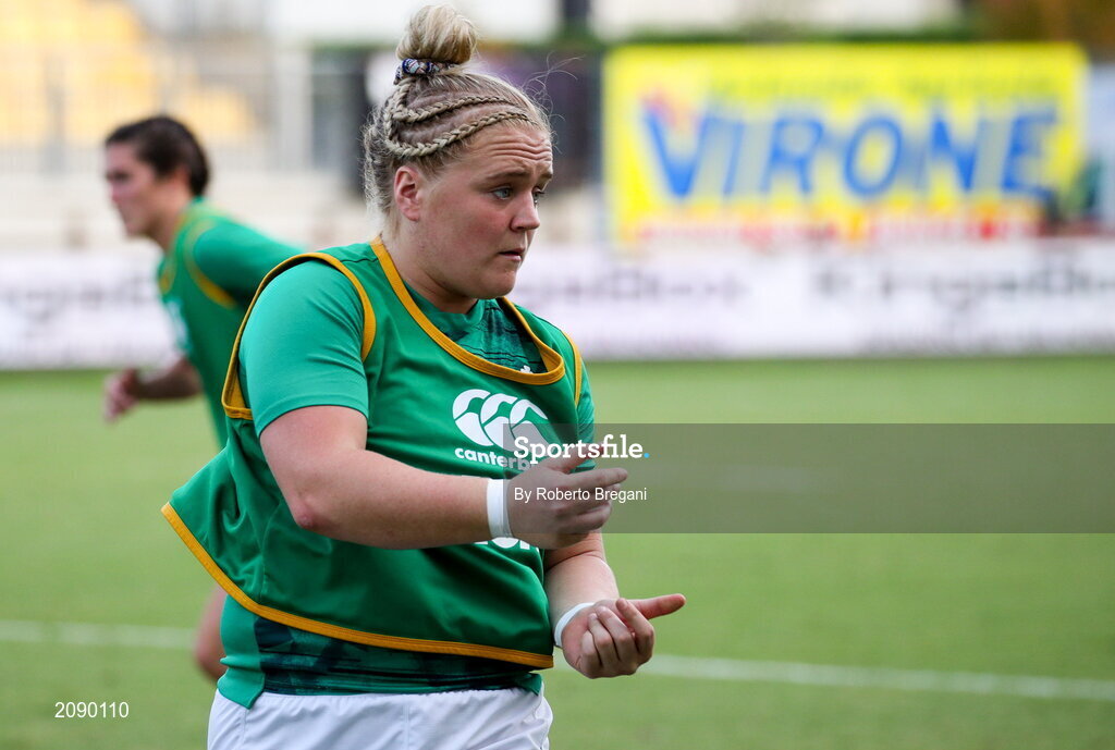 25 September 2021; Cliodhna Moloney of Ireland during the warm-up before the Rugby World Cup 2022 Europe qualifying tournament match between Ireland and Scotland at Stadio Sergio Lanfranchi in Parma, Italy. Photo by Roberto Bregani/Sportsfile