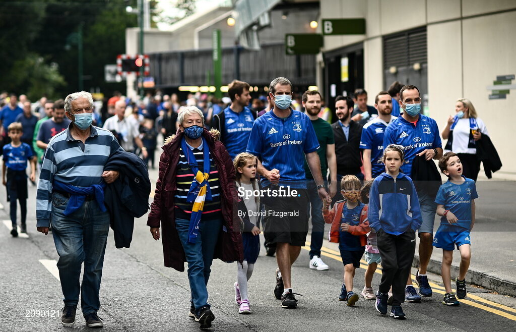 25 September 2021; Leinster supporters arrive prior to the United Rugby Championship match between Leinster and Vodacom Bulls at Aviva Stadium in Dublin. Photo by David Fitzgerald/Sportsfile