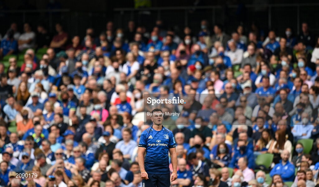 25 September 2021; Jonathan Sexton of Leinster lines up a conversion during the United Rugby Championship match between Leinster and Vodacom Bulls at the Aviva Stadium in Dublin. Photo by Harry Murphy/Sportsfile
