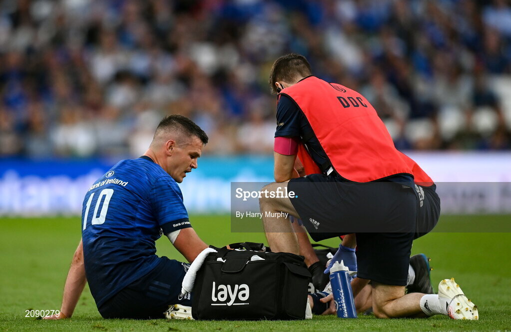 25 September 2021; Jonathan Sexton of Leinster receives treatment during the United Rugby Championship match between Leinster and Vodacom Bulls at the Aviva Stadium in Dublin. Photo by Harry Murphy/Sportsfile