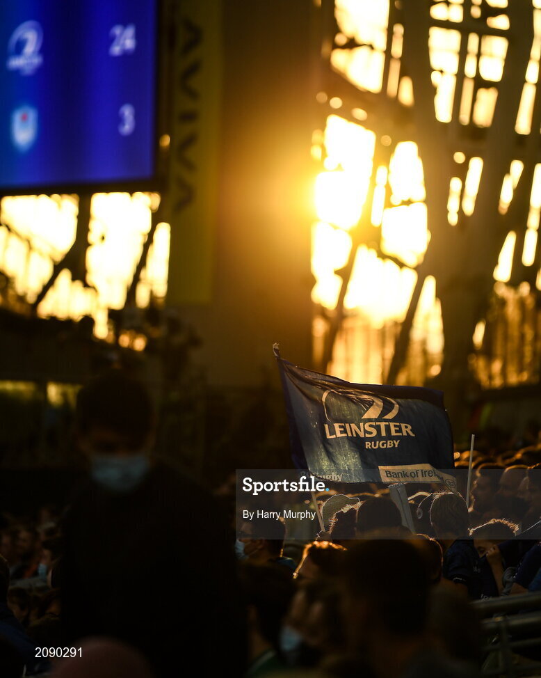 25 September 2021; Leinster supporters during the United Rugby Championship match between Leinster and Vodacom Bulls at the Aviva Stadium in Dublin. Photo by Harry Murphy/Sportsfile