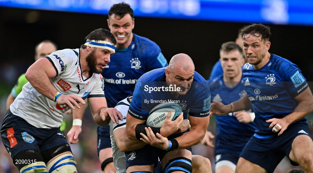 25 September 2021; Rhys Ruddock of Leinster is tackled by Johan Goosen of Vodacom Bulls during the United Rugby Championship match between Leinster and Vodacom Bulls at Aviva Stadium in Dublin. Photo by Brendan Moran/Sportsfile