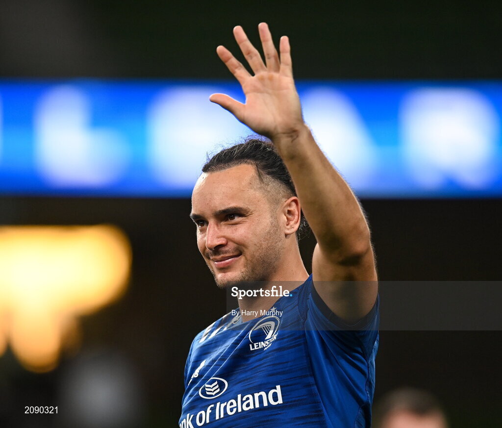 25 September 2021; James Lowe of Leinster after the United Rugby Championship match between Leinster and Vodacom Bulls at the Aviva Stadium in Dublin. Photo by Harry Murphy/Sportsfile