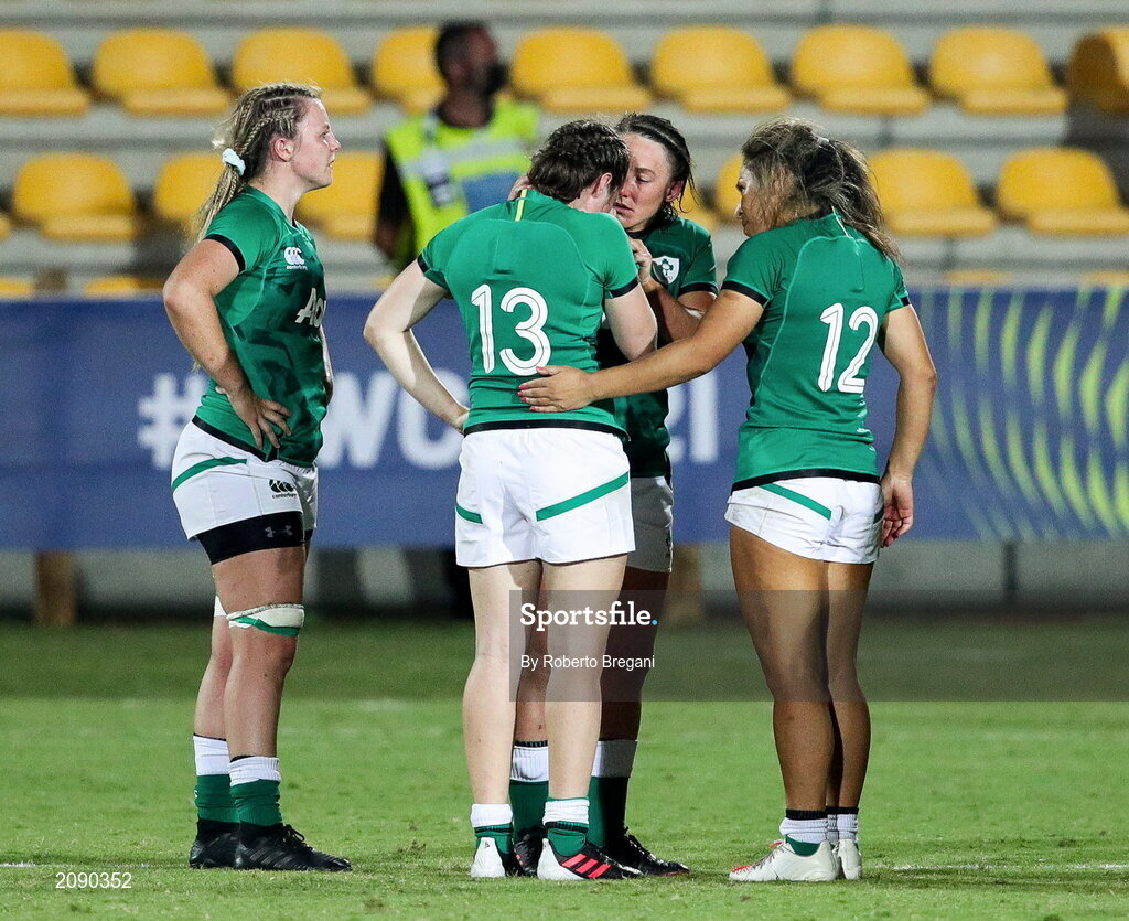 25 September 2021; Dejected Ireland players after the Rugby World Cup 2022 Europe qualifying tournament match between Ireland and Scotland at Stadio Sergio Lanfranchi in Parma, Italy. Photo by Roberto Bregani/Sportsfile