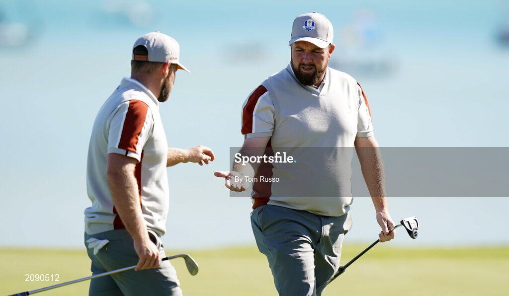 25 September 2021; Shane Lowry, right, and Tyrrell Hatton of Team Europe during their Saturday afternoon fourballs match against Tony Finau and Harris English of Team USA at the Ryder Cup 2021 Matches at Whistling Straits in Kohler, Wisconsin, USA. Photo by Tom Russo/Sportsfile