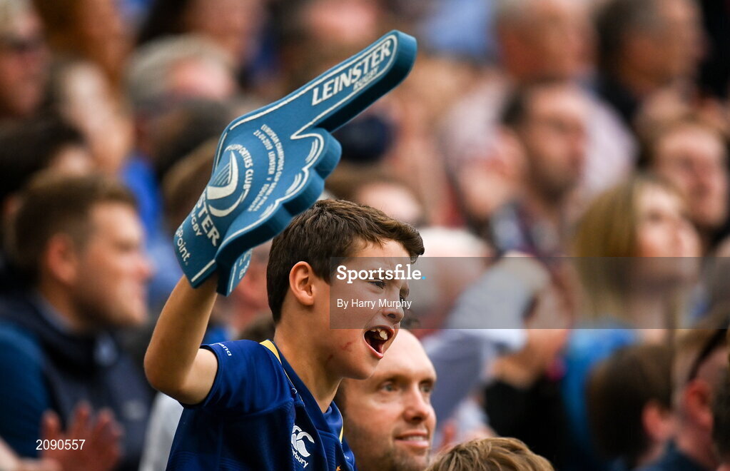 25 September 2021; A Leinster supporter during the United Rugby Championship match between Leinster and Vodacom Bulls at the Aviva Stadium in Dublin. Photo by Harry Murphy/Sportsfile
