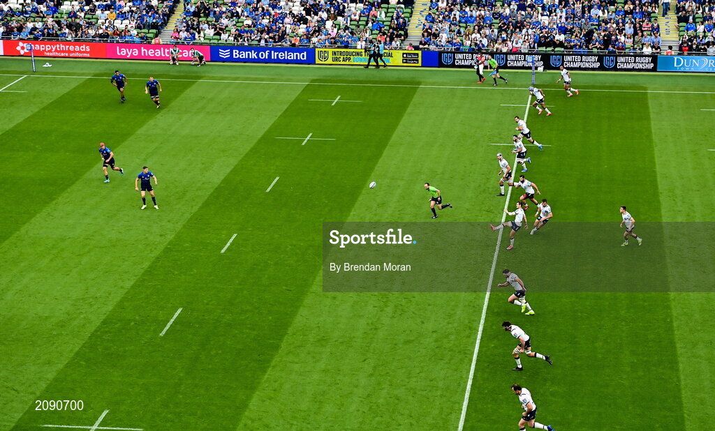 25 September 2021; Johan Goosen of Vodacom Bulls kicks off the United Rugby Championship match between Leinster and Vodacom Bulls at Aviva Stadium in Dublin. Photo by Brendan Moran/Sportsfile