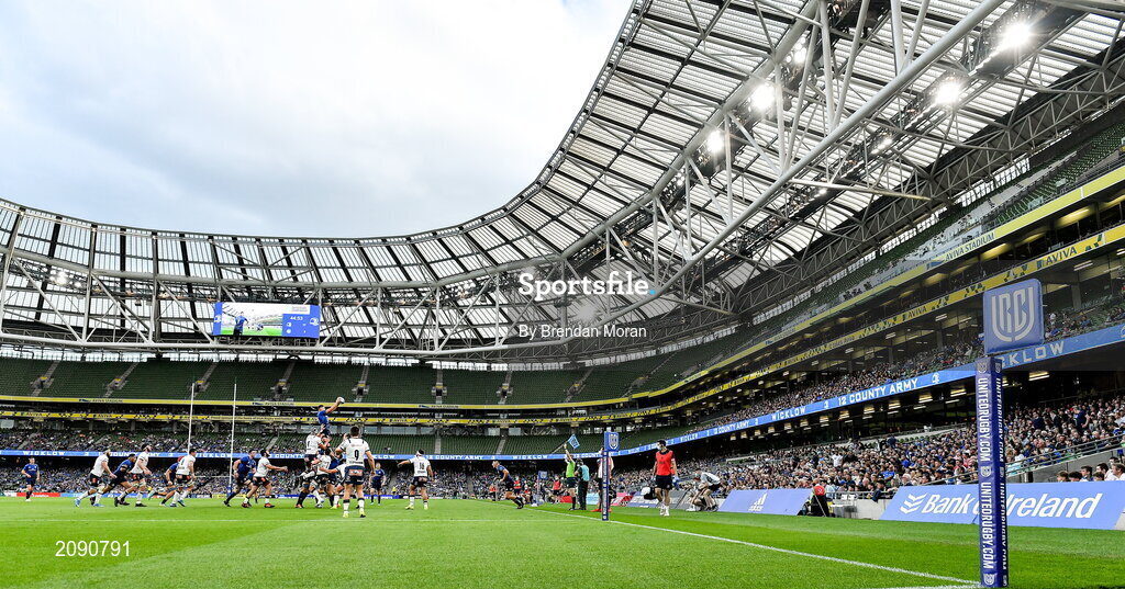 25 September 2021; A general view of a lineout during the United Rugby Championship match between Leinster and Vodacom Bulls at Aviva Stadium in Dublin. Photo by Brendan Moran/Sportsfile