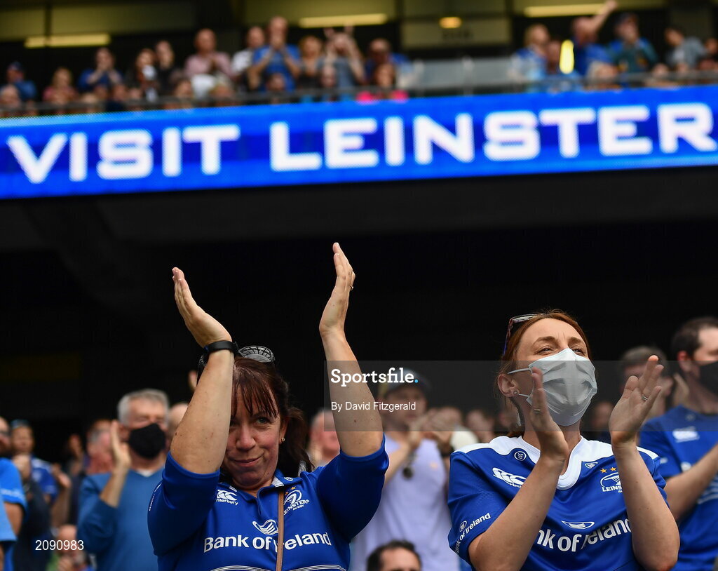 25 September 2021; Leinster supporters prior to the United Rugby Championship match between Leinster and Vodacom Bulls at Aviva Stadium in Dublin. Photo by David Fitzgerald/Sportsfile