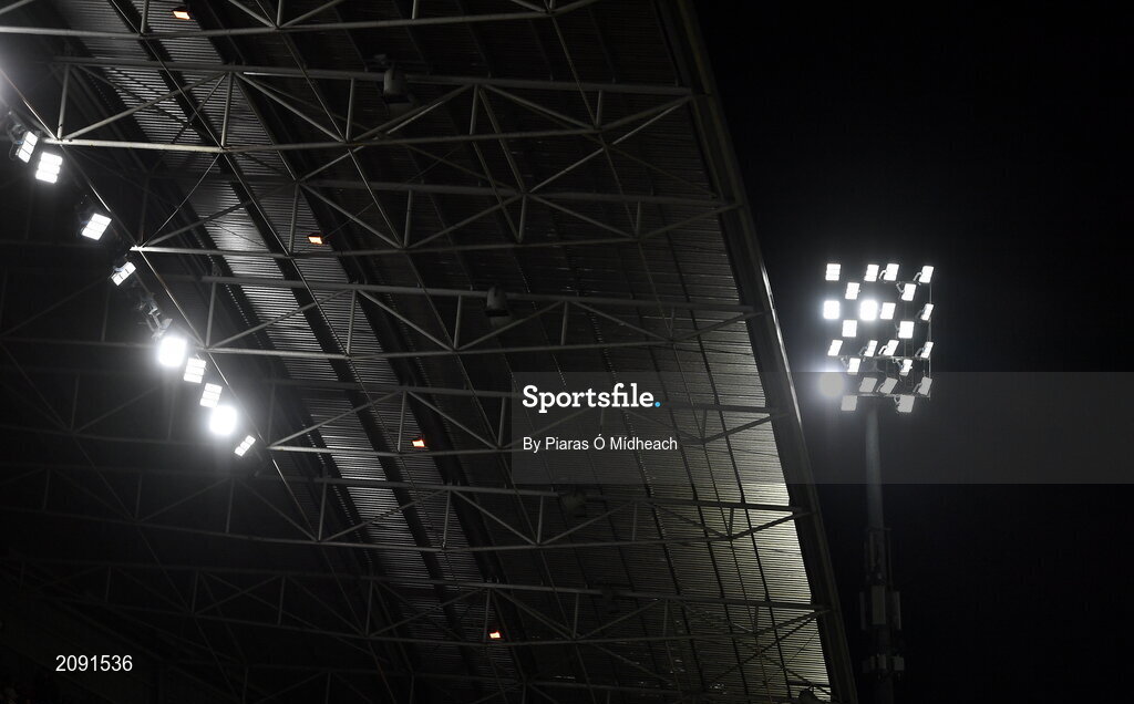 25 September 2021; A general view of a floodlight during the United Rugby Championship match between Munster and Cell C Sharks at Thomond Park in Limerick. Photo by Piaras Ó Mídheach/Sportsfile