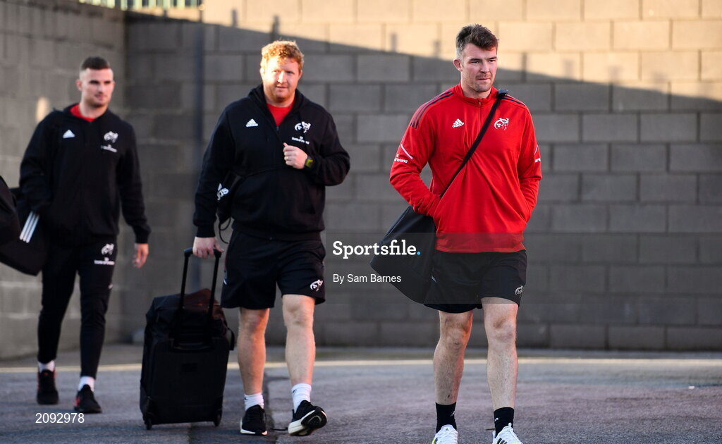 2 October 2021; Peter O'Mahony of Munster, right, and team-mates arrive before the United Rugby Championship match between Munster and DHL Stormers at Thomond Park in Limerick. Photo by Sam Barnes/Sportsfile