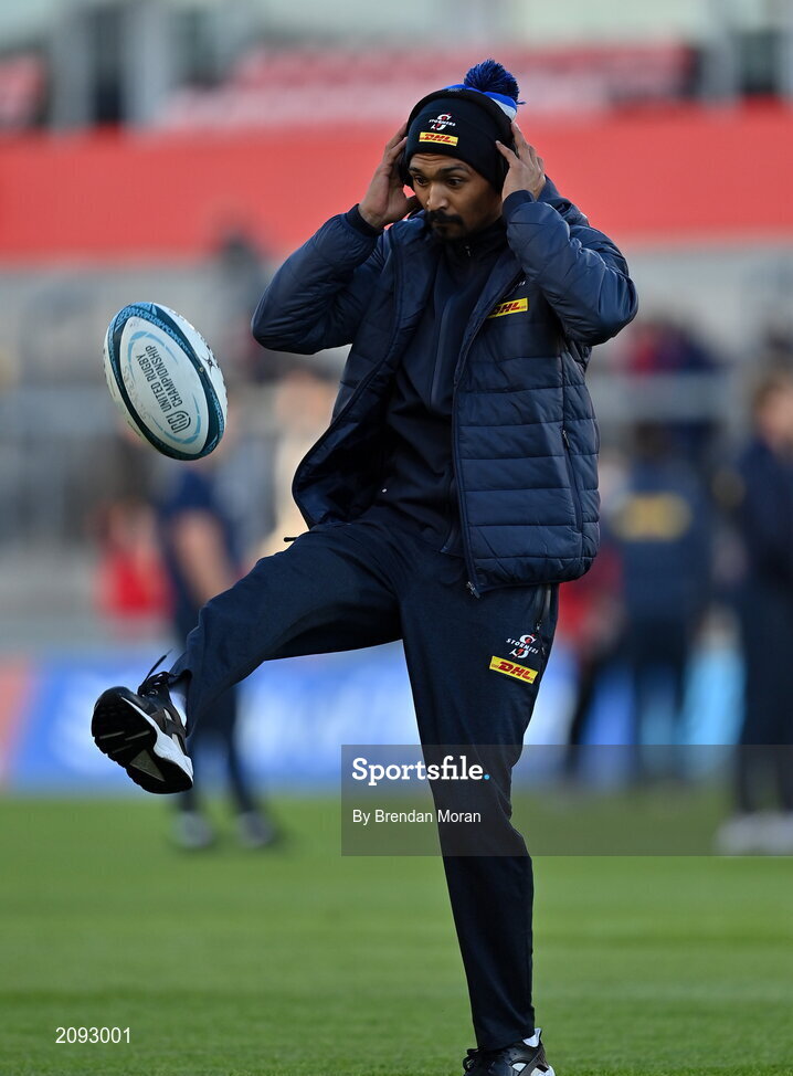 2 October 2021; Tristan Leyds of the DHL Stormers walks the pitch before the United Rugby Championship match between Munster and DHL Stormers at Thomond Park in Limerick. Photo by Brendan Moran/Sportsfile