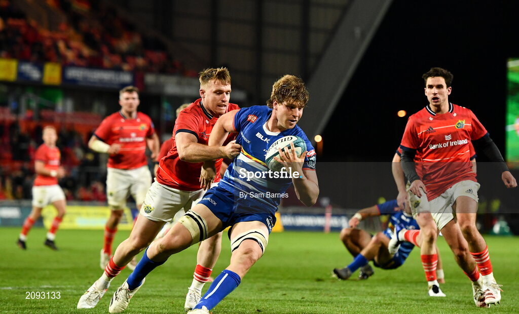 2 October 2021; Evan Roos of DHL Stormers in action against Rory Scannell of Munster during the United Rugby Championship match between Munster and DHL Stormers at Thomond Park in Limerick. Photo by Sam Barnes/Sportsfile