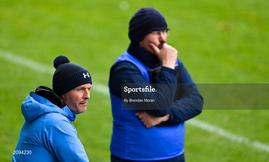 9 May 2021; Laois coach Donach O'Donnell, left, with manager Seamus Plunkett during the Allianz Hurling League Division 1 Group B Round 1 match between Wexford and Laois at Chadwicks Wexford Park in Wexford. Photo by Brendan Moran/Sportsfile