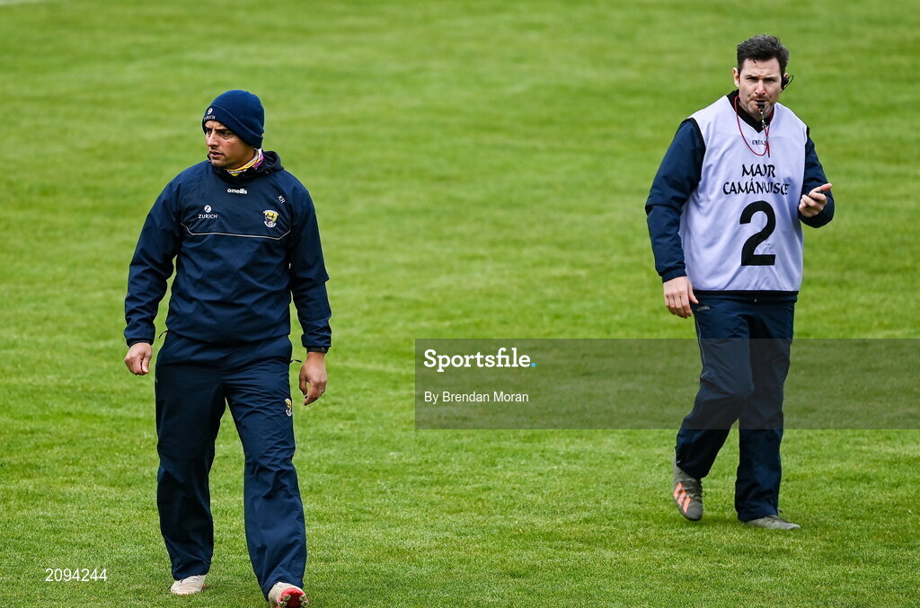9 May 2021; Wexford selectors Keith Rossiter, left, and Niall Corcoran before the Allianz Hurling League Division 1 Group B Round 1 match between Wexford and Laois at Chadwicks Wexford Park in Wexford. Photo by Brendan Moran/Sportsfile