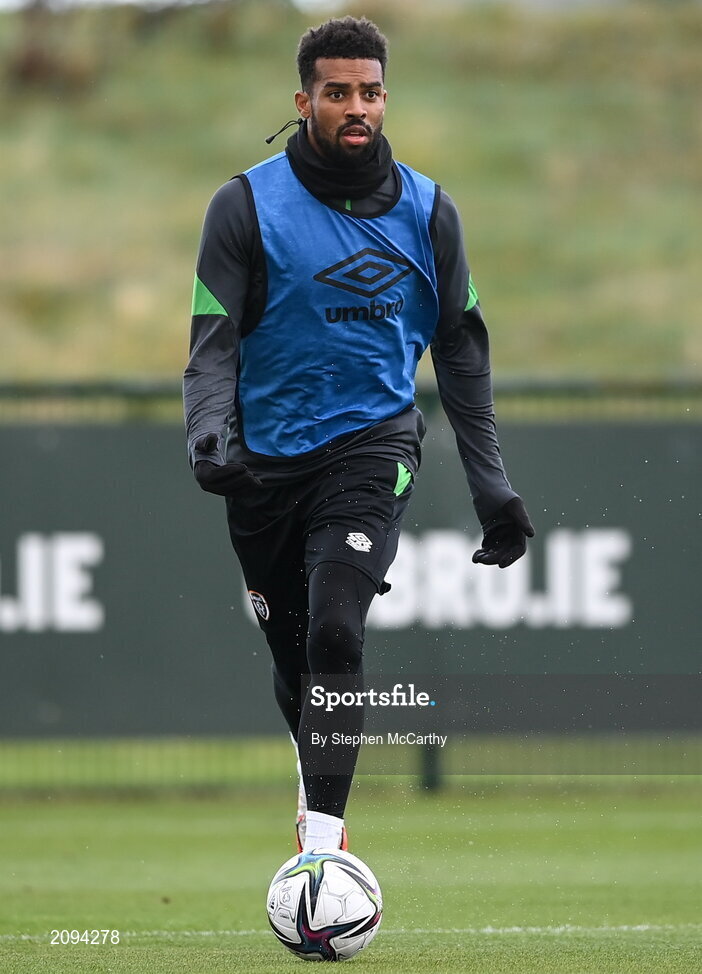 5 October 2021; Cyrus Christie during a Republic of Ireland training session at the FAI National Training Centre in Abbotstown in Dublin. Photo by Stephen McCarthy/Sportsfile