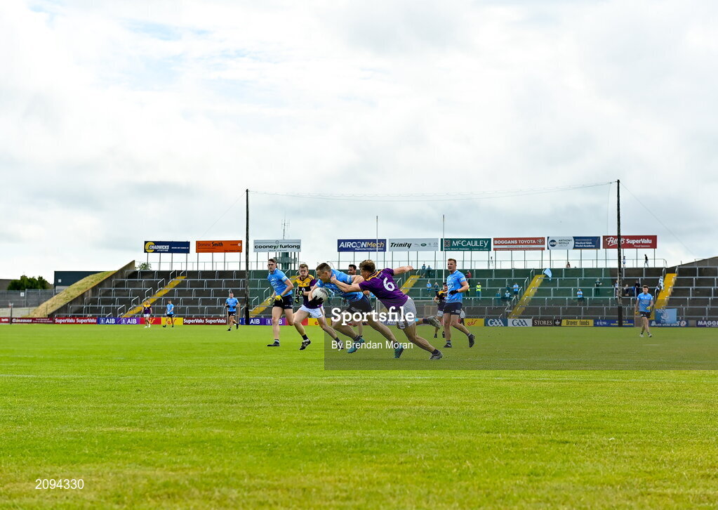4 July 2021; Con O'Callaghan of Dublin is tackled by Martin O'Connor of Wexford during the Leinster GAA Football Senior Championship Quarter-Final match between Wexford and Dublin at Chadwicks Wexford Park in Wexford. Photo by Brendan Moran/Sportsfile