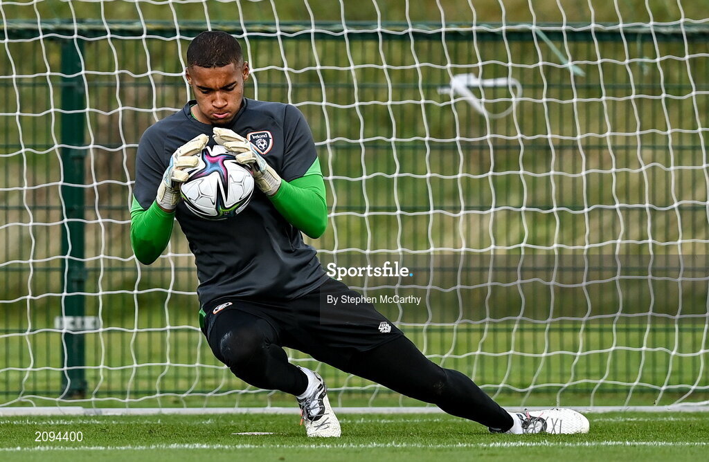 5 October 2021; Goalkeeper Gavin Bazunu during a Republic of Ireland training session at the FAI National Training Centre in Abbotstown in Dublin. Photo by Stephen McCarthy/Sportsfile