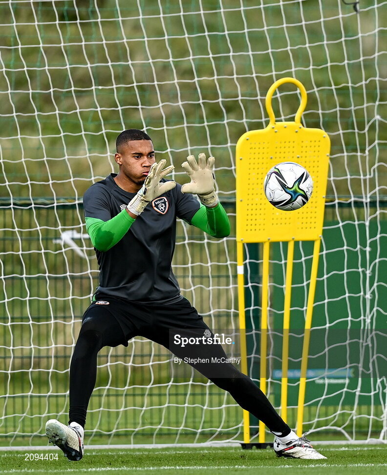 5 October 2021; Goalkeeper Gavin Bazunu during a Republic of Ireland training session at the FAI National Training Centre in Abbotstown in Dublin. Photo by Stephen McCarthy/Sportsfile