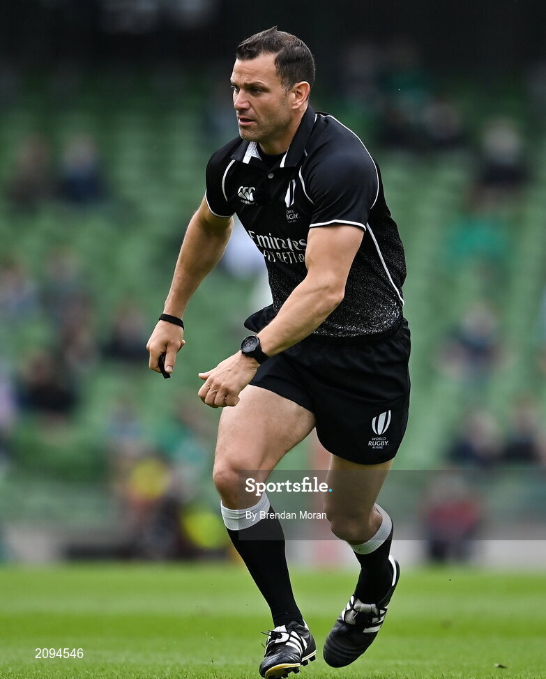 3 July 2021; Referee Karl Dickson during the International Rugby Friendly match between Ireland and Japan at Aviva Stadium in Dublin. Photo by Brendan Moran/Sportsfile