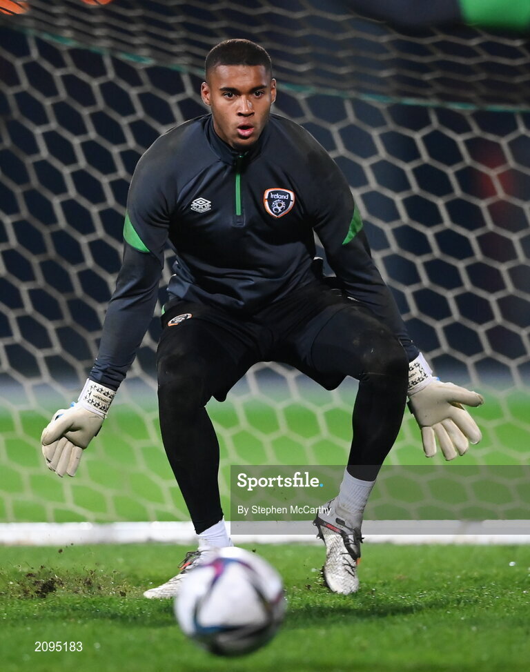 7 October 2021; Goalkeeper Gavin Bazunu during a Republic of Ireland training session at the Baku Olympic Stadium Training Pitch in Baku, Azerbaijan. Photo by Stephen McCarthy/Sportsfile