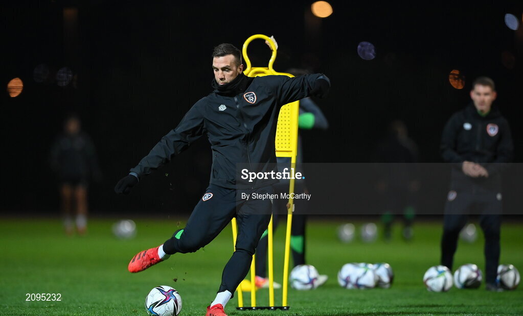 7 October 2021; Shane Duffy during a Republic of Ireland training session at the Baku Olympic Stadium Training Pitch in Baku, Azerbaijan. Photo by Stephen McCarthy/Sportsfile