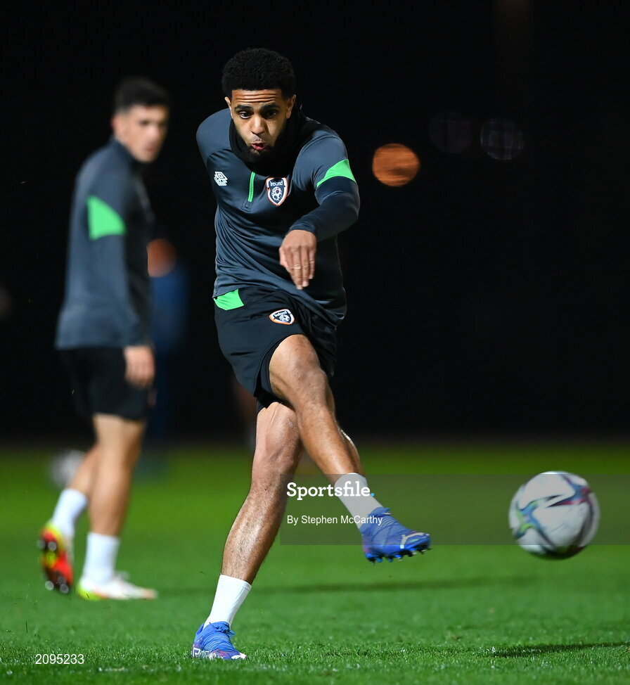 7 October 2021; Andrew Omobamidele during a Republic of Ireland training session at the Baku Olympic Stadium Training Pitch in Baku, Azerbaijan. Photo by Stephen McCarthy/Sportsfile