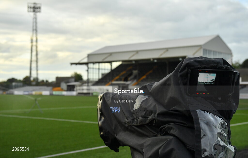 8 October 2021; A broadcast television camera before the SSE Airtricity League Premier Division match between Dundalk and Shamrock Rovers at Oriel Park in Dundalk, Louth. Photo by Seb Daly/Sportsfile