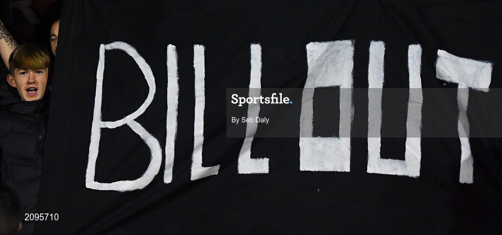 8 October 2021; A Dundalk supporter holds up a banner before the SSE Airtricity League Premier Division match between Dundalk and Shamrock Rovers at Oriel Park in Dundalk, Louth. Photo by Seb Daly/Sportsfile