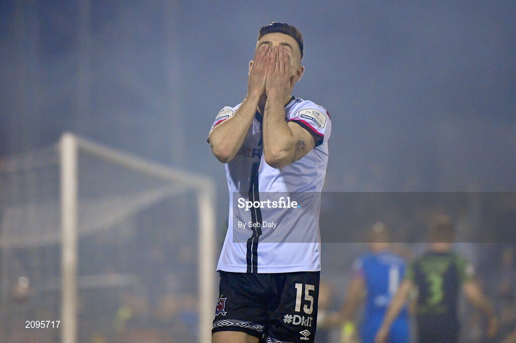 8 October 2021; Darragh Leahy of Dundalk reacts during the SSE Airtricity League Premier Division match between Dundalk and Shamrock Rovers at Oriel Park in Dundalk, Louth. Photo by Seb Daly/Sportsfile
