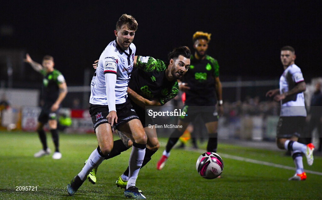 8 October 2021; Will Patching of Dundalk in action against Richie Towell of Shamrock Rovers during the SSE Airtricity League Premier Division match between Dundalk and Shamrock Rovers at Oriel Park in Dundalk, Louth. Photo by Ben McShane/Sportsfile