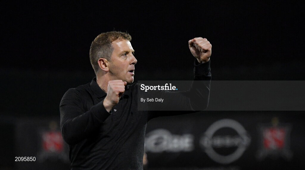 8 October 2021; Dundalk head coach Vinny Perth celebrates after his side's victory over Shamrock Rovers in their SSE Airtricity League Premier Division match at Oriel Park in Dundalk, Louth. Photo by Seb Daly/Sportsfile