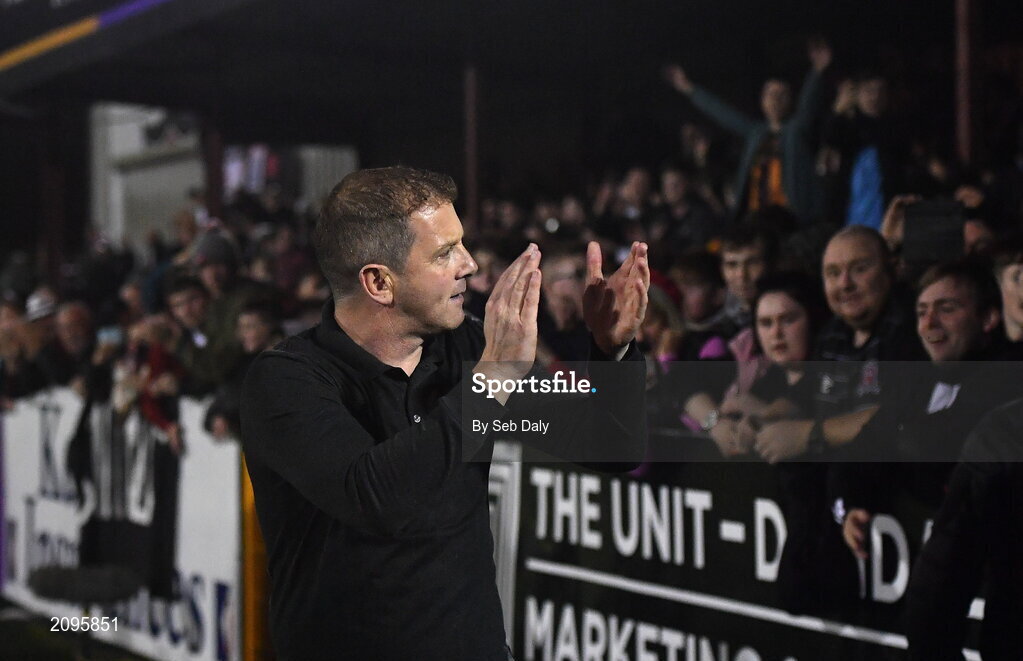 8 October 2021; Dundalk head coach Vinny Perth celebrates after his side's victory over Shamrock Rovers in their SSE Airtricity League Premier Division match at Oriel Park in Dundalk, Louth. Photo by Seb Daly/Sportsfile