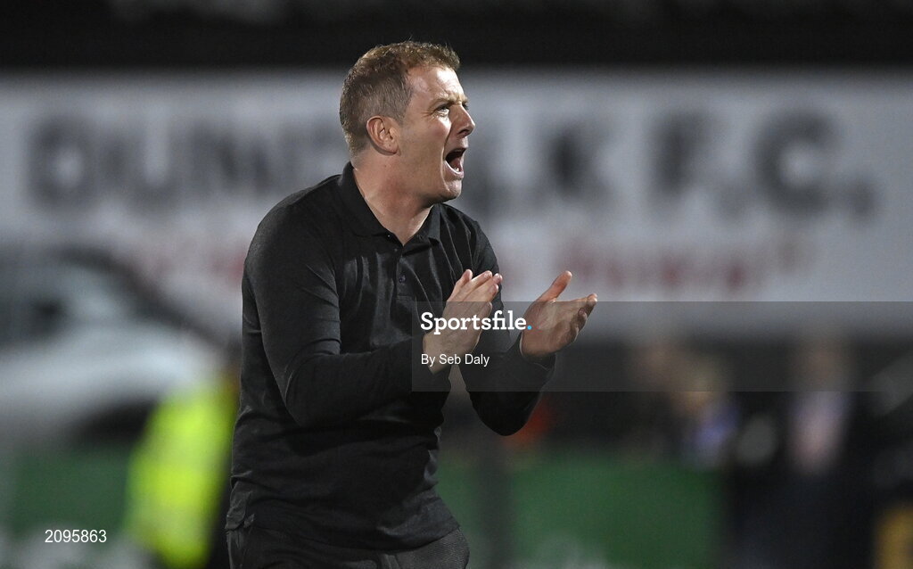 8 October 2021; Dundalk head coach Vinny Perth celebrates after his side's victory over Shamrock Rovers in their SSE Airtricity League Premier Division match at Oriel Park in Dundalk, Louth. Photo by Seb Daly/Sportsfile