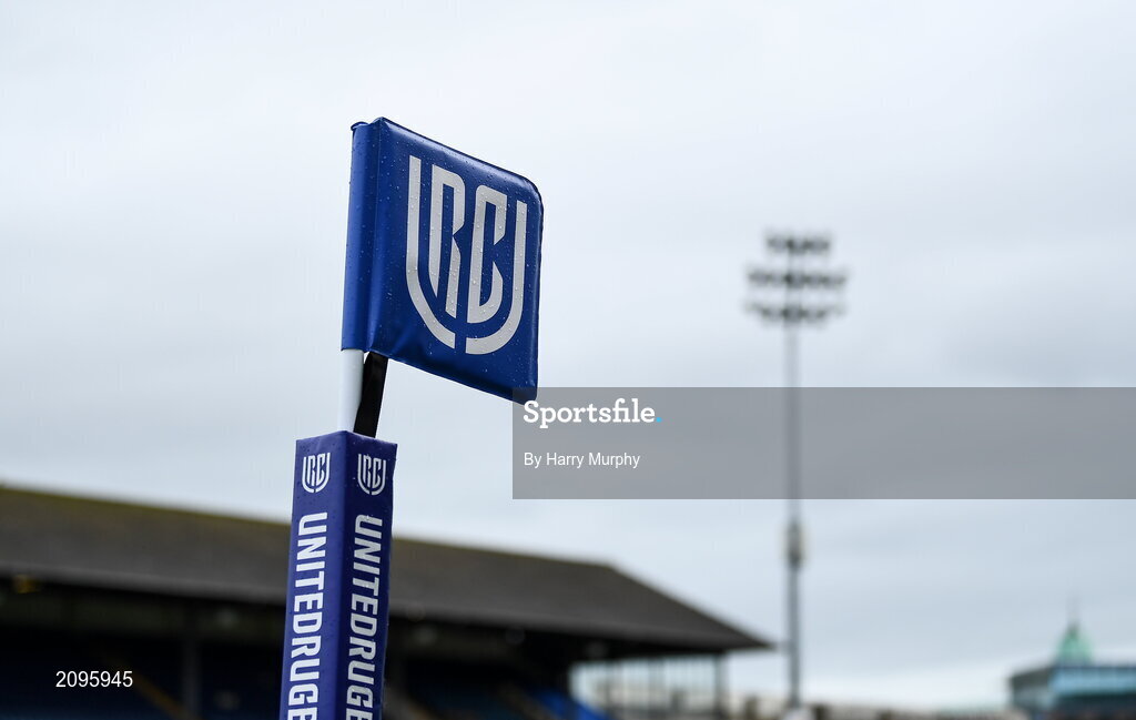 9 October 2021; A general view of a flag before the United Rugby Championship match between Leinster and Zebre at the RDS Arena in Dublin. Photo by Harry Murphy/Sportsfile