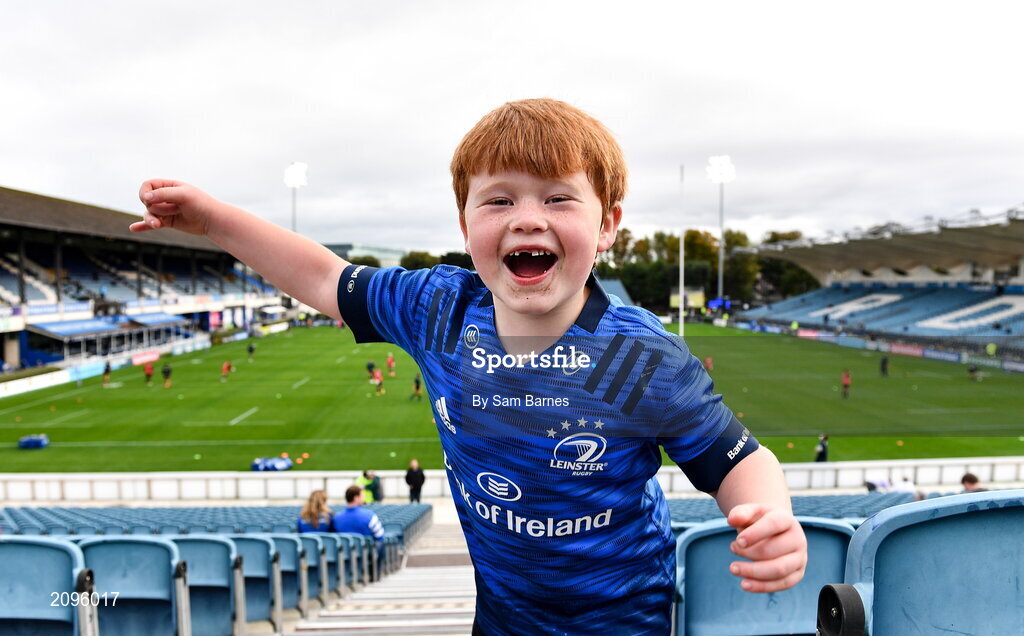 9 October 2021; Leinster supporter Rhys Hixson, aged 6, from Rathfarnham in Dublin, before the United Rugby Championship match between Leinster and Zebre at RDS Arena in Dublin. Photo by Sam Barnes/Sportsfile
