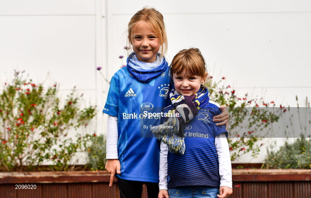 9 October 2021; Leinster supporters Leah Byrne, aged 6, and Robyn McMahon, aged 4, from Blanchardstown in Dublin before the United Rugby Championship match between Leinster and Zebre at RDS Arena in Dublin. Photo by Sam Barnes/Sportsfile