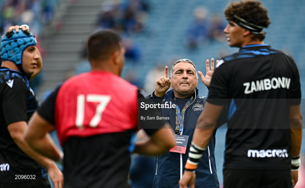 9 October 2021; Zebre head coach Michael Bradley issues instructions to his players before the United Rugby Championship match between Leinster and Zebre at RDS Arena in Dublin. Photo by Sam Barnes/Sportsfile