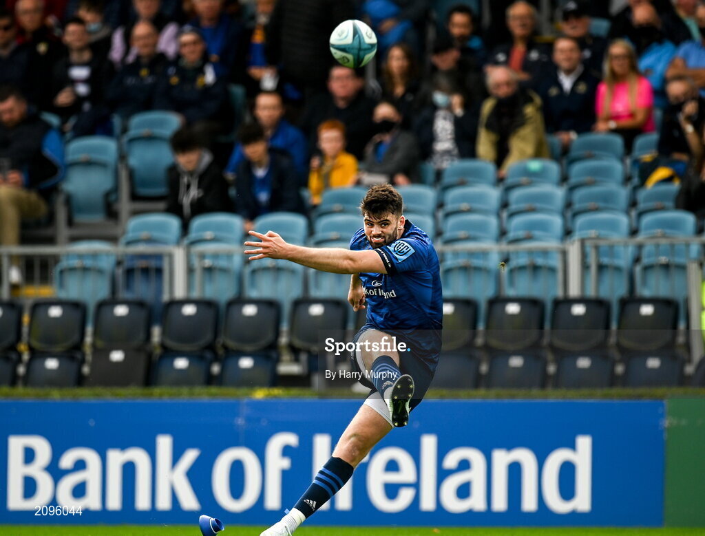 9 October 2021; Harry Byrne of Leinster kicks a conversion during the United Rugby Championship match between Leinster and Zebre at the RDS Arena in Dublin. Photo by Harry Murphy/Sportsfile