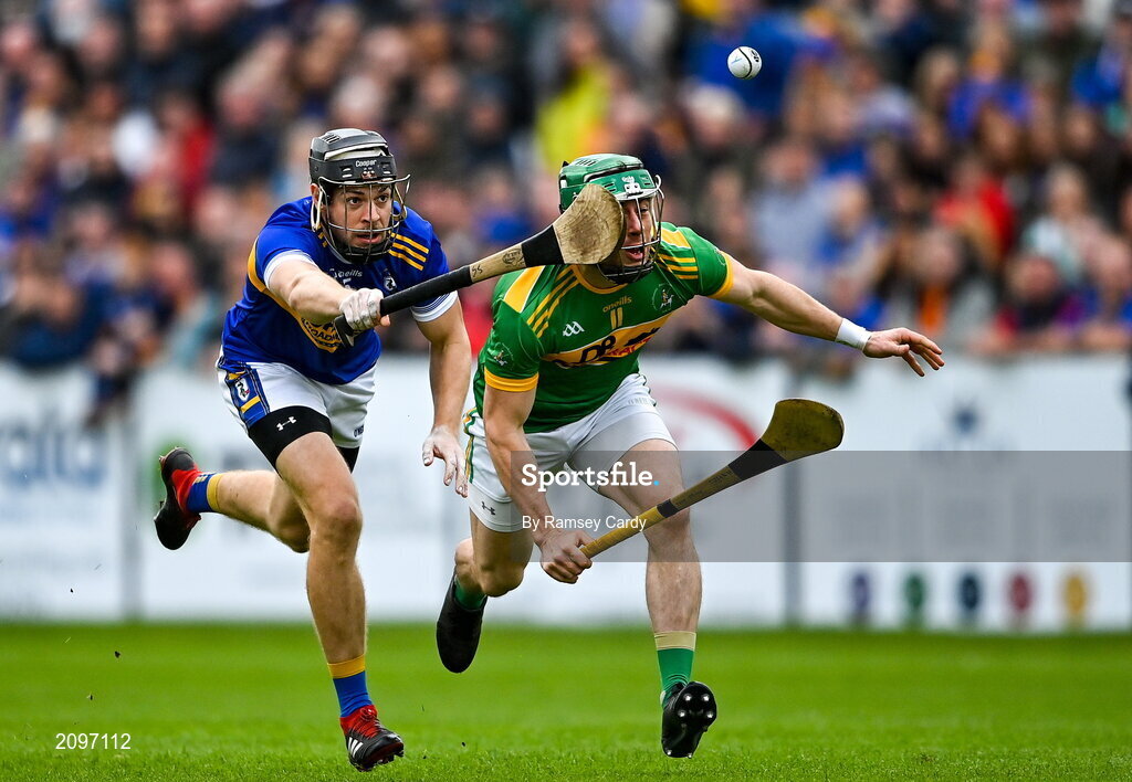 10 October 2021; Kevin Molloy of Dunloy in action against Stephen Shannon of O'Donovan Rossa during the Antrim County Senior Club Hurling Championship Final match between Dunloy and O'Donovan Rossa at Corrigan Park in Belfast. Photo by Ramsey Cardy/Sportsfile