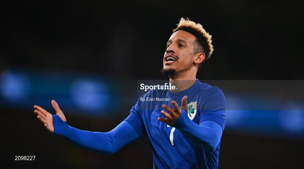 12 October 2021; Callum Robinson of Republic of Ireland celebrates after scoring his side's second goal during the international friendly match between Republic of Ireland and Qatar at Aviva Stadium in Dublin. Photo by Eóin Noonan/Sportsfile