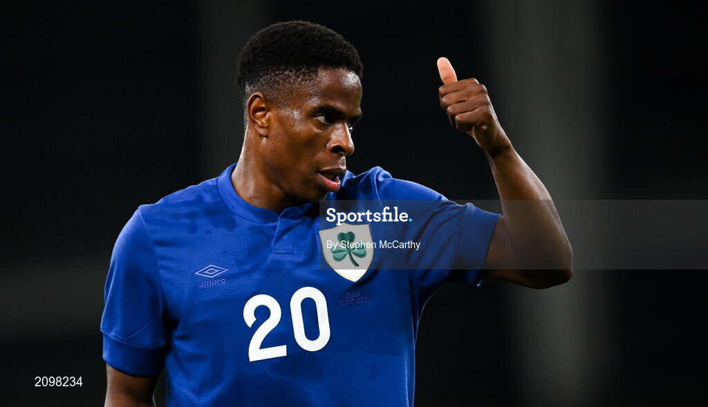 12 October 2021; Chiedozie Ogbene of Republic of Ireland during the international friendly match between Republic of Ireland and Qatar at Aviva Stadium in Dublin. Photo by Stephen McCarthy/Sportsfile