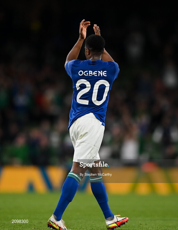 12 October 2021; Chiedozie Ogbene of Republic of Ireland leaves the pitch on being substituted during the international friendly match between Republic of Ireland and Qatar at Aviva Stadium in Dublin. Photo by Stephen McCarthy/Sportsfile