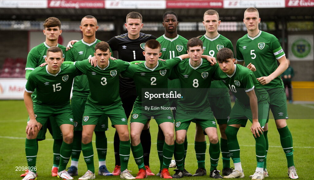 13 October 2021; Republic of Ireland team before the UEFA U17 Championship Qualifying Round Group 5 match between Republic of Ireland and Poland at Turner's Cross in Cork. Photo by Eóin Noonan/Sportsfile