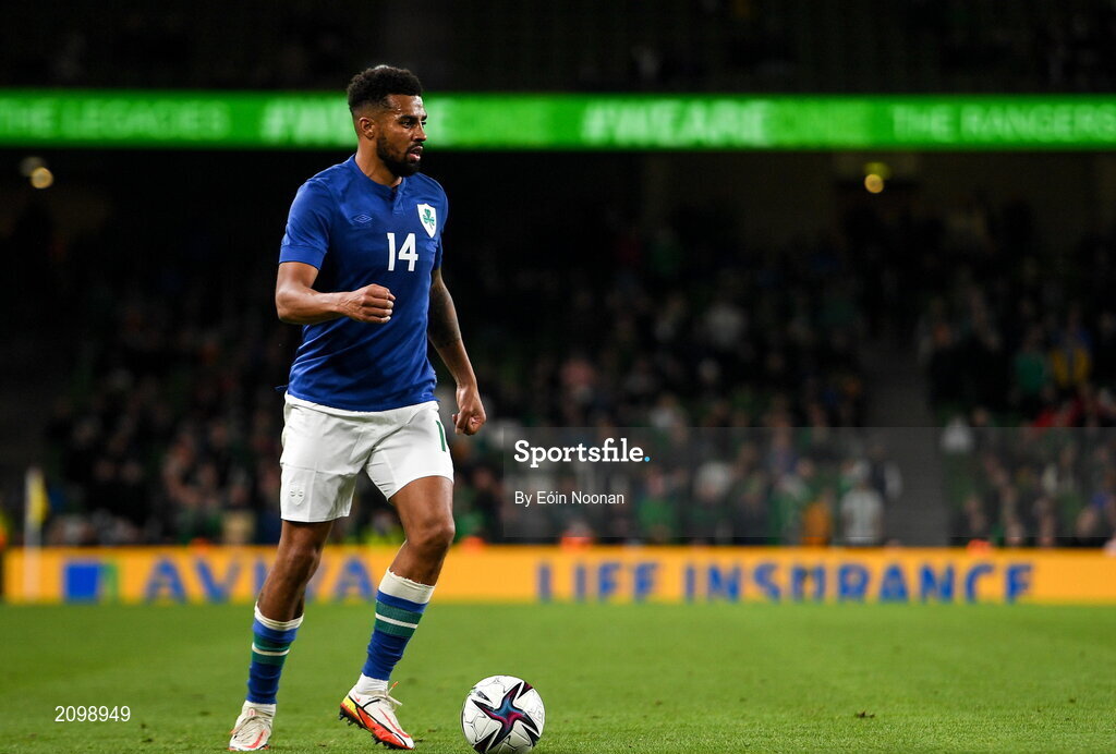 12 October 2021; Cyrus Christie of Republic of Ireland during the international friendly match between Republic of Ireland and Qatar at Aviva Stadium in Dublin. Photo by Eóin Noonan/Sportsfile