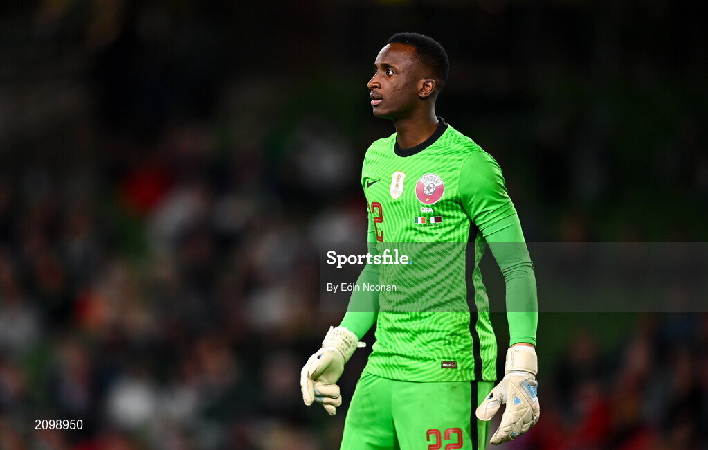 12 October 2021; Meshaal Barsham of Qatar during the international friendly match between Republic of Ireland and Qatar at Aviva Stadium in Dublin. Photo by Eóin Noonan/Sportsfile